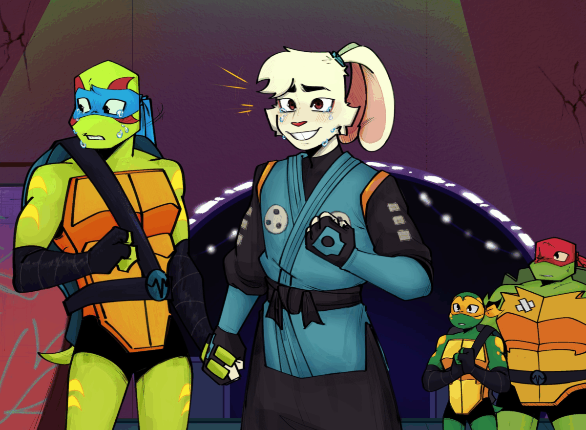 Mikey walked towards Leo and looked him in the eyes. “Leo… I am sorry I stuck to Raph. I knew you were suffering, but I didn’t do enough.” Mikey said. Then… he smiled with pride at his brother and Yuichi with tears in his eyes, until he focused his attention on the rabbit only.