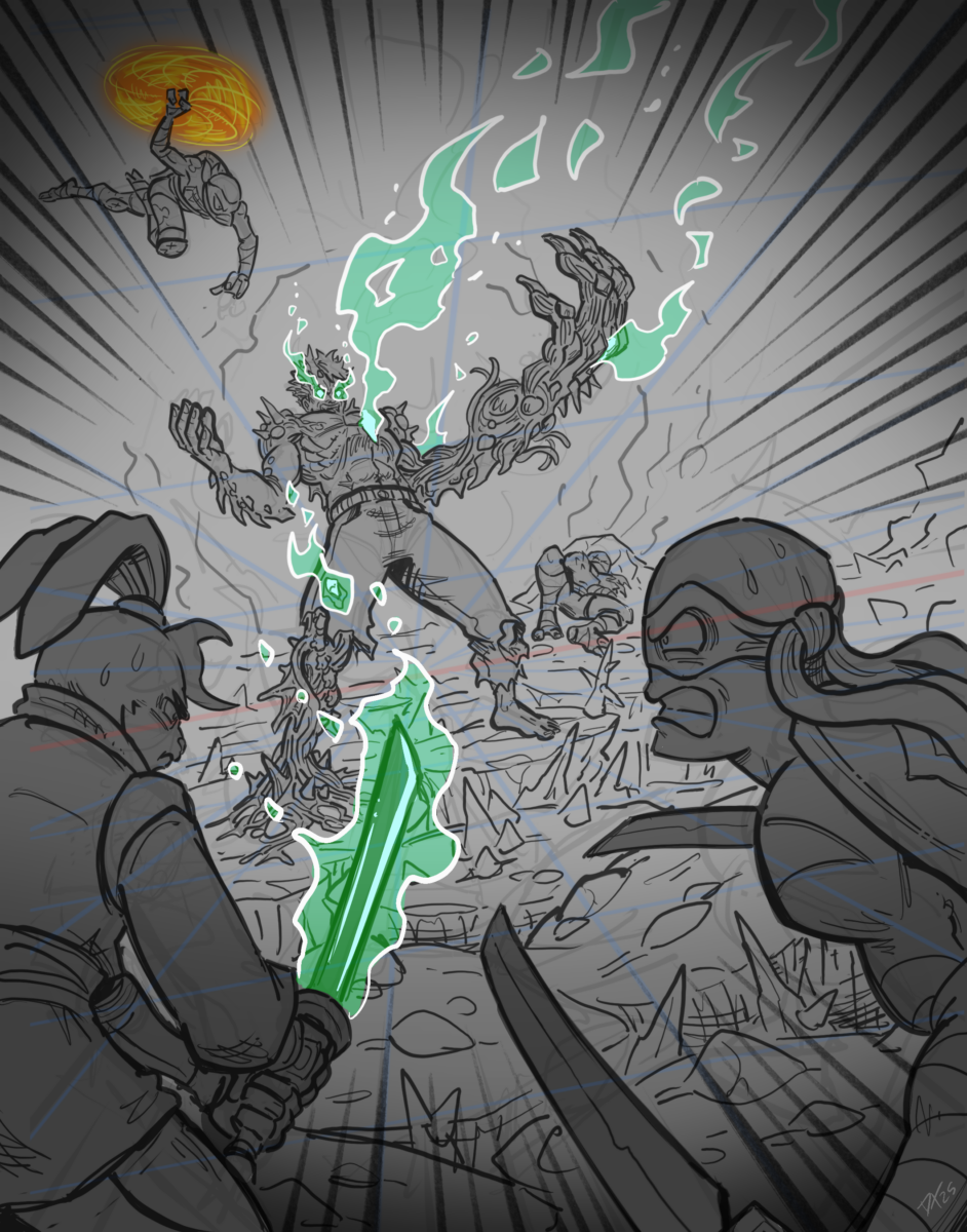 Everybody was huffing and puffing, especially Mikey and Draxum who were hit, several wounds and cuts being on their bodies. But Leo started taking charge of the plan… “PHASE 2, MOVE FORWARD.”