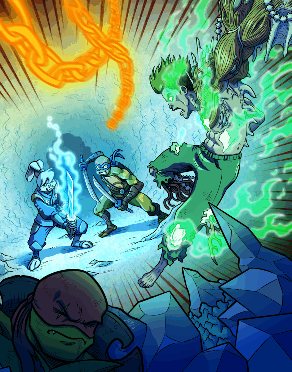 “ITS WORKING, HIS SOUL IS BURNING, KEE-” But Morris flew closer towards Mikey, and then the turtle got knocked away by a rock coming out of the ground due to Morris channeling kinetic energy on it. Raph slowly woke up, starting to stop the bleeding again from his arm. Unfortunately though, that was all he could muster.